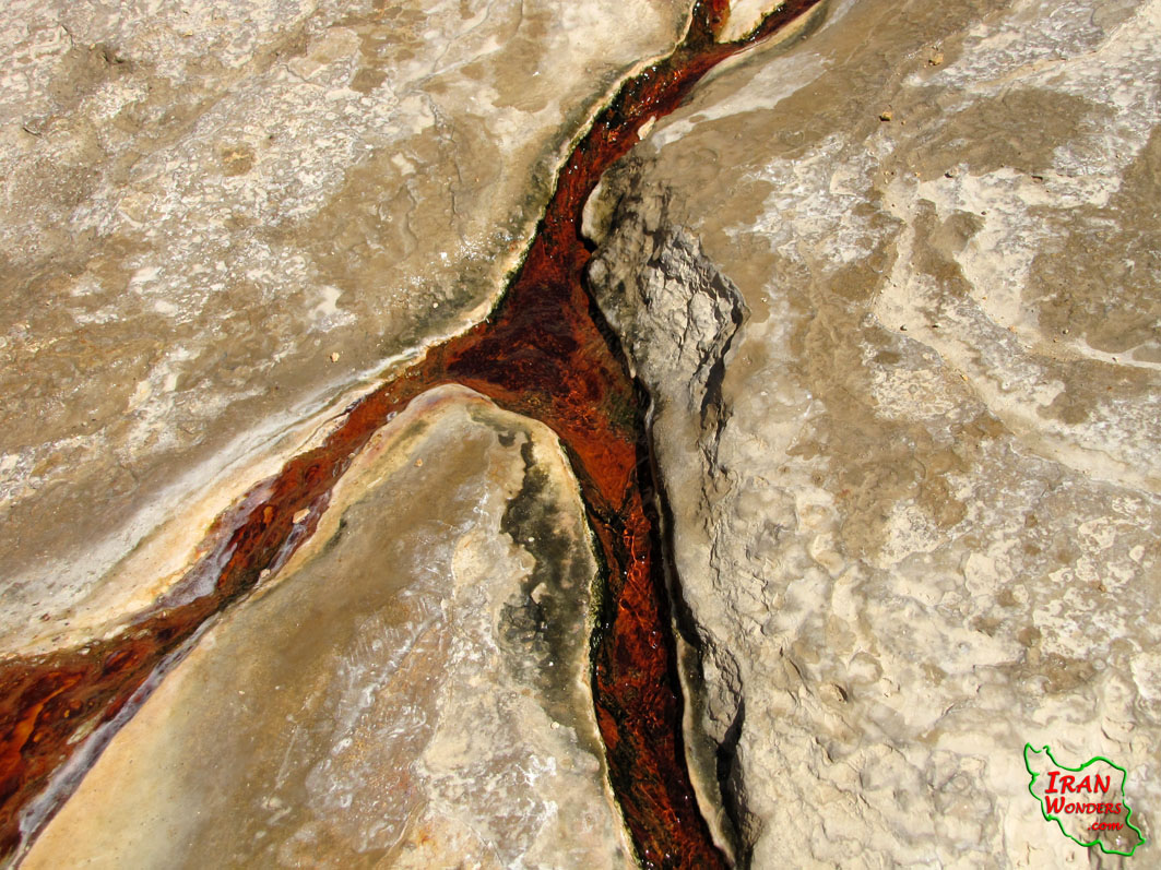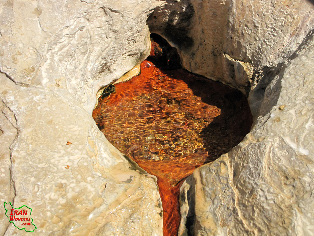 در کنار چشمه های آب شور چشمه کوچک دیگری قرار دارد که به رنگ قرمز است. یک چشمه کوچک که از دل سنگ بیرون می زند و به واسطه آهن بالای آن، ترش مزه است و ردی به رنگ خون بر سنگ گذاشته است و زیبایی و منحصر به فرد بودنش دست کمی از چشمه های آب شور ندارد.