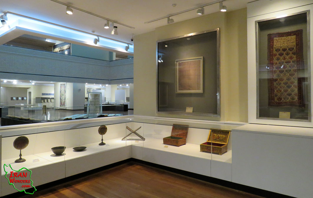 موزه دوران اسلامی نیز در بنایی مستقل بر اساس پلانی الهام گرفته از کاخ ساسانی بیشاپور، به صورت چلیپایی هشت ضلعی، با مساحتی حدود 4000 متر مربع و در سه طبقه ساخته شد. طبقه همکف این بنا به سالن اجتماعات و نمایشگاهها اختصاص دارد. آثار موزه دوران اسلامی در دو طبقه اول و دوم، بر اساس زمان بندی تاریخی چیدمان شده است. بازدید از طبقه دوم شروع می شود و در طبقه اول به پایان می رسد. موزه کنونی شامل شش تالار در دو طبقه است. طبقه دوم شامل تالارهای صدر اسلام، سلجوقی و ایلخانی و طبقه اول تالارهای قرآن، تیموری، صفویه، افشار، زند و قاجار می باشد.