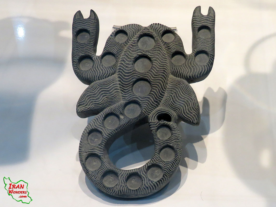مجسمه مردی که احتمال می رود یکی از خدایان این تمدن باشد به ارتفاع 115 سانتیمتر در درون فرو رفتگی تاقچه مانندی بر روی تپه جنوبی کشف شد. بالاتنه آن برهنه بوده و با رنگ زرد رنگ آمیزی شده و از سینه به بالای آن از میان رفته است. زمینه دامن وی نیز با رنگ قرمز رنگ آمیزی شده است.