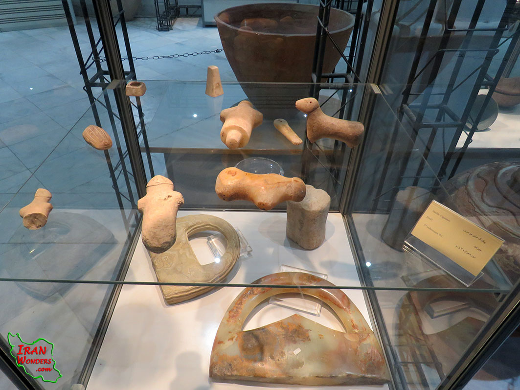 از آثار کشف شده در این تمدن می توان به ظروف و پلاک های سنگی با نقوش بسیار ظریف از انسان و موجوداتی چون عقاب، عقرب، پلنگ، قوچ، آهو، مار و شیر اشاره کرد که نظیر آنها در هیچ یک از محوطه های باستانی جهان کشف نشده است. اشیای پیدا شده مانند جام ها، ظروف مختلف، گلدان های ساخته شده از سنگ یا گل مخصوص کوزه گری، مزین به نقش و نگارهای برجسته بسیار بدیع از حیوانات، دام، طبیعت، نخل و گیاهان که با نگین های رنگین گرانبها مانند فیروزه، مرمر، یشم، لاجورد، طلا، سنگ کلریت و یا مروارید بوده اند. بر روی بسیاری از ظروف طرح معماری ساختمان های دو یا سه طبقه به چشم می خورد. از روی این نقوش و بازمانده دانه های غلات پی برده اند که این مردم زندگی کاملا شهر نشینی توام با کشاورزی، دامپروری، پیشه وری و صنعت داشته اند. در هیچکدام از نقوش اثری از شکار یا جنگ و یا ابزاری که گویای چنین صحنه ها و اعمالی باشد دیده نشده است.