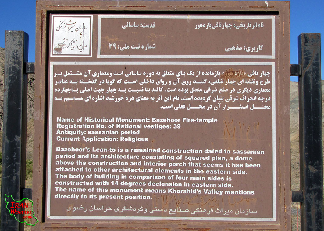 آتشکده بازه هور در فهرست آثار ملی به ثبت رسیده و به چهارتاقی بازه هور مشهور است. بازه به معنی دره و هور به معنی خورشید است که بر روی هم بازه هور به معنی دره خورشید است. این آتشکده اهمیت تاریخی جلگه رخ را نشان می دهد، به طوری که در منابع آمده است: از روزگار باستان دارای اهمیت و اعتبار بوده است، وجود آتشکده است در بازه هور.