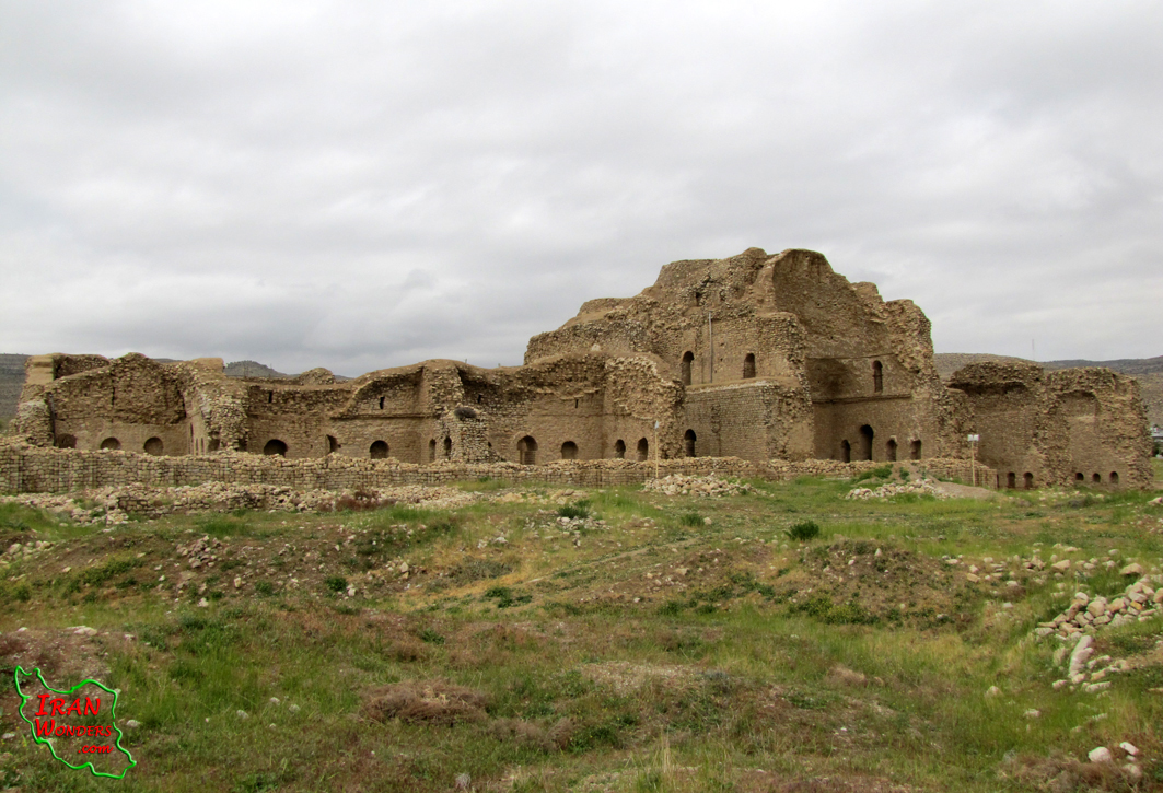 این بنا به طول 116 متر و عرض 55 متر یکی از کاخ های ییلاقی اردشیر به شمار می رود که از سنگ پاره و ملات گچ ساخته شده و نمای آن از شمال به چشمه جوشان مدوری موسوم به برم پیر که آب زلالی از آن می جوشد و جاری می گردد و از جنوب به دیوار بلندی است که آتشکده اصلی در آن جهت و بیرون از کاخ ساخته شده است. این بنای بزرگ سنگی دارای سه گنبد، ایوان ها، دهلیزها و اتاق های متعدد است که همچنان باقی مانده گچ بری ها و تزیینات بالای درهای داخل آن پس از حدود 17 قرن باقیست. به نظر می رسد اردشیر بابکان در احداث کاخ خود به کاخ های شاهنشاهان هخامنشی توجه نشان می داد.