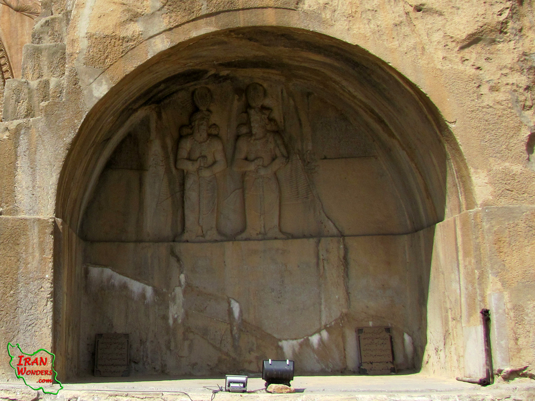 ایوان کوچک که در کنار ایوان بزرگ ارتفاع کمتری را دارد، به نام ایوان کوچک یا طاق کوچک نام گذاری شده است. در داخل طاق نقش دو نفر به حالت ایستاده نقش شده است که از نظر شکل ظاهر با یکدیگر تفاوتی ندارند و تنها تفاوت در تاج آنها دیده می شود. دو کتیبه به زبان پهلوی ساسانی به معرفی این دو شخص می پردازد که یکی را شاهپور دوم و دیگری را شاهپور سوم معرفی می کند.