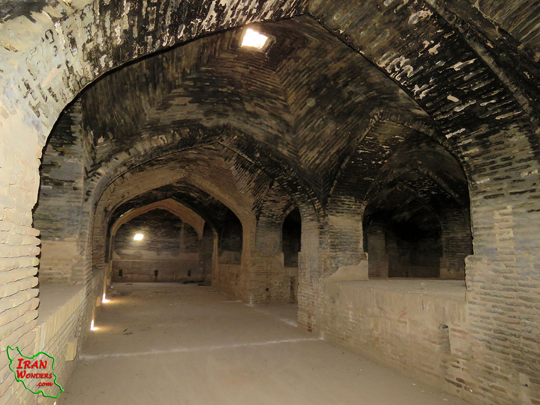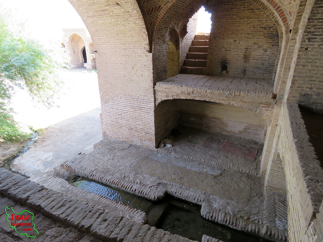 کاروانسرا فاقد آب انبار است و آب مورد نیاز توسط چشمه دائمی که نهر آن از کنار ورودی غربی و قسمت شاه نشین وارد کاروانسرا شده و به شکل نهری از وسط کاروانسرا و زیر بارانداز جاری است و از کنار ورودی شرقی از کاروانسرا خارج می شود، تامین می شده است. تعداد 5 عدد توالت با معماری قدیم و کاملا آجری در بیرون ورودی غربی کاروانسرا قرار دارند. توالت ها فاقد در بوده و توسط دیواری در وسط از ورودی جدا شده که مسیری مارپیچ ایجاد کرده است. حتی سنگ توالت بصورت آجری است و معماری تاریخی توالت ها در دوران صفویه و قاجار را به خوبی حفظ کرده است.