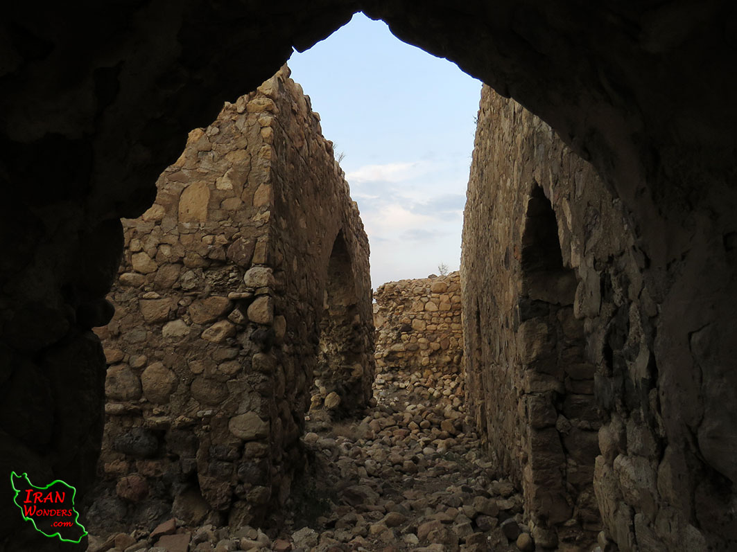 رباط سنگی انوشیروان دارای سردری رفیع، با چهار طاقنما در طرفین و به مساحت حدود 17 هزار متر مربع، شکل گرفته است. هسته اصلی رباط آهوان با 15 برج، یک سردر، چهار ایوان و دیوارهای عظیم سنگی در بین برجها ساخته شده است. دیوار مقابل ورودی کاروانسرا، با گچبری شیر و شکری و رنگ اخرایی تزیین شده و با الگوی آجرنما از طرفین و کاربندی زیبا در وسط مزین شده است. پوشش سردر ترکیبی از آجر حنایی و سنگ رودخانه ای با ملات گچ و خاک است. بنا به صورت چهار ایوانی و حیاط مرکزی آن به شکل مستطیل و به ابعاد 40 در 30 متر است. دروازه ورودی کاروانسرا از سمت شمال است. در دو طرف ایوان، سکوهایی برای استراحت و محلی برای بار انداز ایجاد شده است. در کنار ایوان، راه پله ای سوار بر قوس تیزه دار، هدایت کننده مسافران به پشت بام است. در دو ضلع غربی و شرقی دو روزن به دو اتاق مجاور و دو ورودی با طاقنمایی زیبا به رواق های دور تا دور و حیاط می پیوندد. حجره ها دور تا دور بنا قرار گرفته و چهار فضای جداگانه (احتمالا اصطبل، مطبخ و انبار) را در چهار گوشه بنا جای داده است. نحوه اتصال حجره ها به حیاط مرکزی توسط رواق ها انجام شده است. تمامی حجره ها دارای ((هورنو)) (نورگیر سقف) هستند که تامین نور و تهویه هوا را به عهده دارند. جنس پوششها ترکیبی از سنگ و آجر است. در وسط حیاط مرکزی آب انباری چهار ظلعی با طاق آجری قرار دارد. این کاروانسرا تا مدتی قبل مورد استفاده مسافران قرار می گرفت، به طوری که در سال 1903 میلادی (( ویلیام جکسون)) عکاس و نقاش آمریکایی، شاهد استفاده مسافران بوده است. این بنا به شماره 1727 در فهرست آثار ملی به ثبت رسیده است.